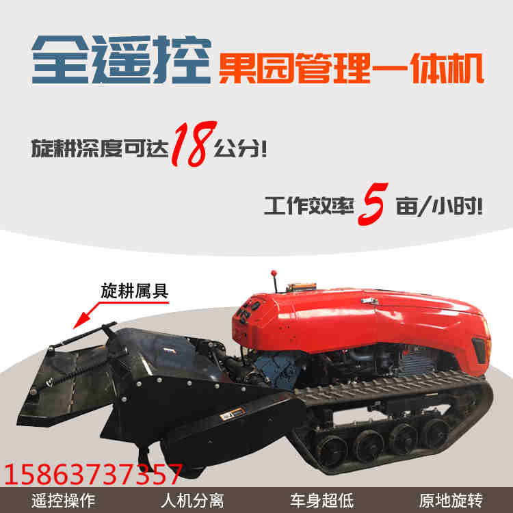 1.这款果园管理机功能非常强大,能够满足农民不同的作业需求,通过更换不同的属具,共能够实现九大功能,通过遥控器对整机进行控制,实现人机分离,保证作业人员安全。