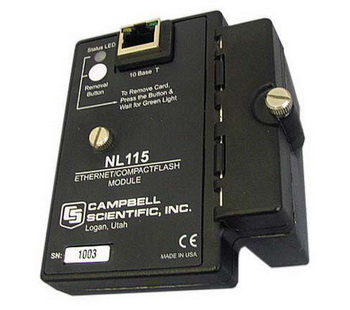 NL115自带10M以太网接口和闪存卡存储模块,利用TCP/IP协议,既可以将观测数据存储到CF存储卡中,又能够通过双绞线将数据采集器及整个观测系统接入以太局域网或公网,实现对观测系统的远程控制和观测数据的网络传输。它通过40针的外设端口连接到CR1000或CR3000数据采集器上的。CR200系列和CR800系列数据采集器无法接驳NL115。