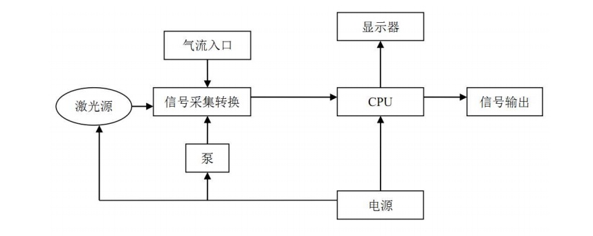 外部含尘空气在风机的吸引下进入采样口,经导流装置(遮掉外部光线)进入检测器暗室。暗室内的平行光与受光部的视野成直角交叉构成灵敏区,粉尘通过灵敏区时,其 90℃方向散射光透过狭缝射进光电倍增管转换成光电流,经光电流积分电路转换成与散射光成正比的电信号。通过放大电路和 A/D 转换电路计算出粉尘的质量浓度。