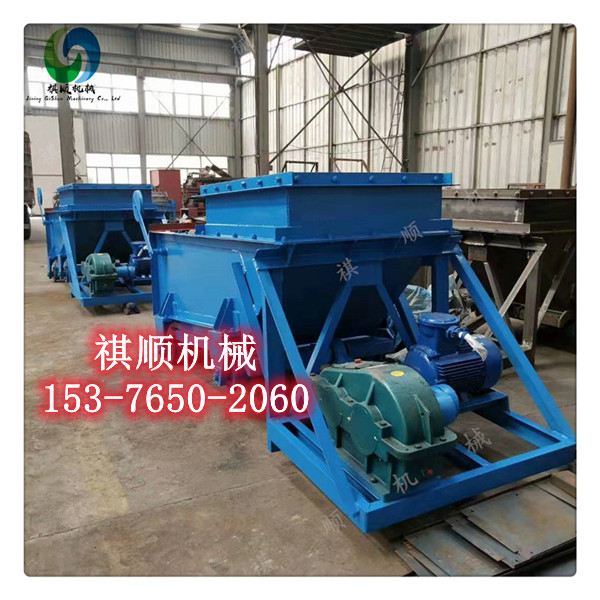 K型给料机由机架、底板(给料槽)、传动平台、漏斗、闸门、托辊组成,当电机开动后经弹性联轴器,减速机、曲柄连杆机构拖动倾斜5度的底板,在辊上作直线往复运动,把煤或其它磨琢性小,粘性不大的松散粒状,粉状物料从给料设备中均匀地卸到受料设备中