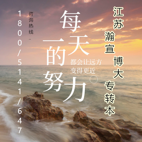 江苏瀚宣·博大专转本是一家专做五年制专转本培训的辅导机构已有十余年,汇集了众多转本经验丰富的名师,小班化教学,帮助同学们提高复习效率,找到复习方向。针对性辅导一门英语和两门专业课,全年滚动开班,随到随学,一次报名可循环上课至考前,越早报名课时量越多,江苏省内13市的1-5年级高职生均可以参加。并根据考生不同基础情况开设:单科班、周末班、寒暑期集训营、考前押·题班、冲刺班等不同班次,考生可根据自身基础情况选择相应的班次,不同的班次都有专业的老师进行指导,还针对考生的个人不同基础情况指导专业的复习方式。更多江苏五年制专转本详情请联系1800微5141同647严老师,预约试听课程并领取招生简章一份。同学和家长有空余时间可以先来实地考察上课环境、师资情况及录取率后再做考虑。