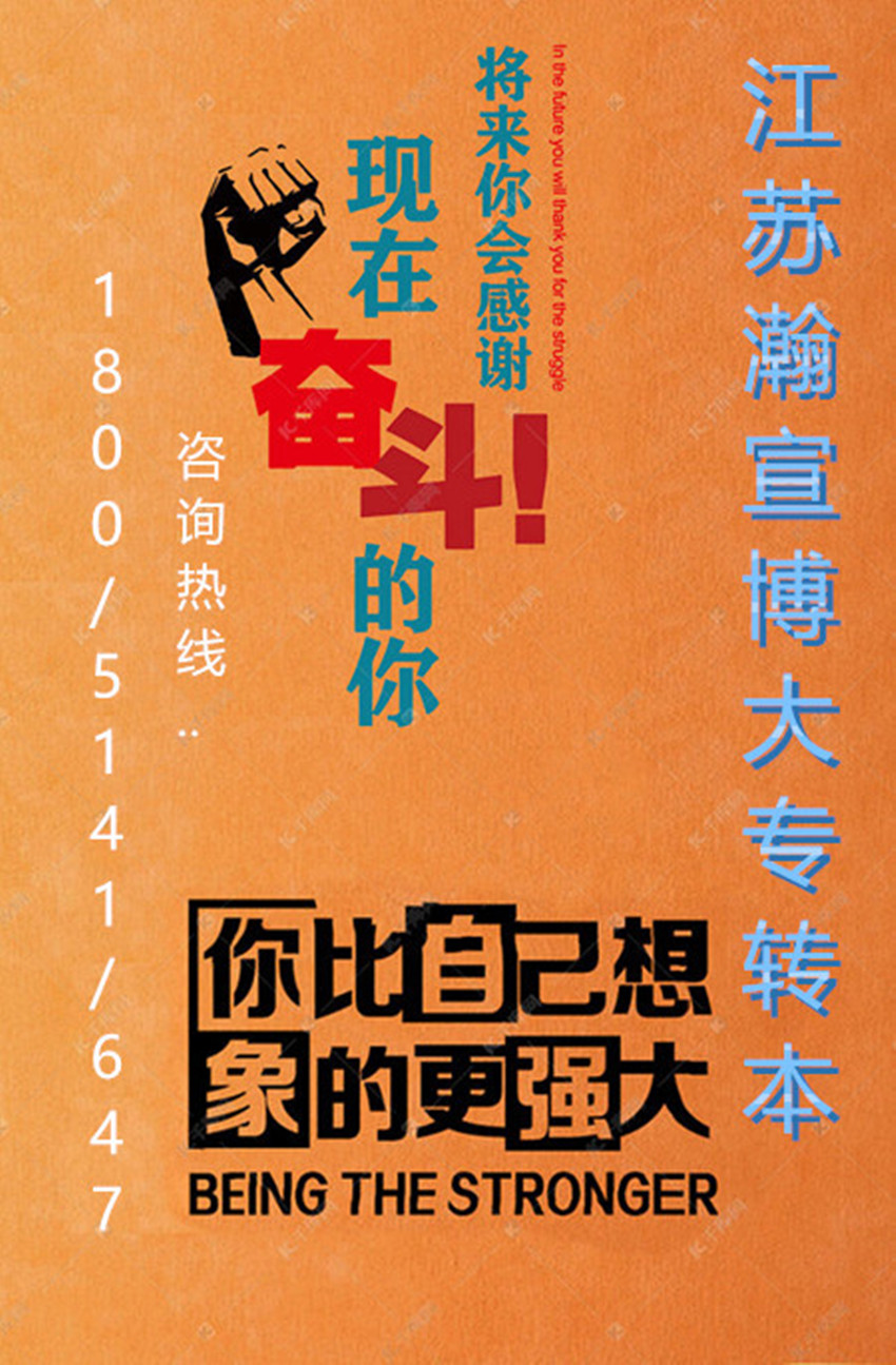 江苏瀚宣博大可以为你实现本科梦想,为你提供一个提升自己的机会与选择,给在为转本考试发愁的同学们提供一个改变自己的空间,五年制专转本考试是高职生唯1一次能获取全日制·本科学·历的机会,江苏博大专转本教育让你转本不再困难。了解更多转本详情联系1800微5141同647严老师,预约免费试听课程、获取招生政策免费讲解等。