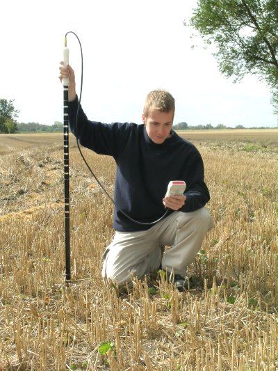 探点直径10cm,上下高度高5cm 的圆柱体样土壤决定的了测量值95%的灵敏度,所以在这个圆柱体积内不能有金属、石头和根系,以免影响测量结果。 |