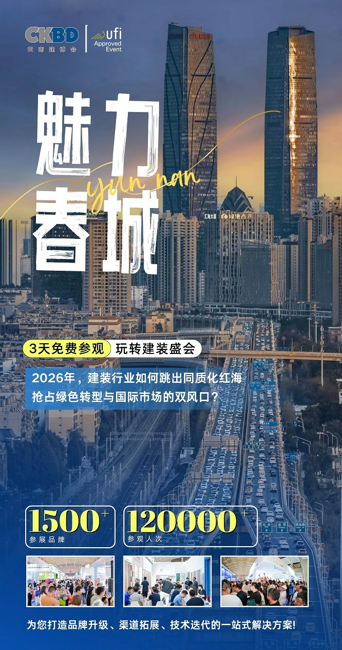 云南国际建筑及装饰材料博览会(简称“云南建博会”)创办于2007年,作为从建筑到装饰的全产业链产品展示平台,云南建博会与各主办及合作单位协作,以“构建绿色中国”为理念,推动云南省及全国建筑装饰行业与南亚、东南亚市场的交流合作,促进产业结构优化和行业高质量发展。云南建博会始终致力于打造集建筑材料、装饰材料、智慧建筑及装配式建筑、门窗及配套、全屋定制、智能家电及厨卫电器、照明及灯饰、地坪及防水、木工及石材机械等多元主题于一体的综合性展览平台。通过持续创新与资源整合,云南建博会已成为连接国内外品牌供应商、生产企业、贸易商、代理商与云南省及南亚地区建筑装饰行业的重要桥梁,为行业提供专业化、国际化的高质量服务,助力产业结构升级,推动建装行业迈向更高水平发展。