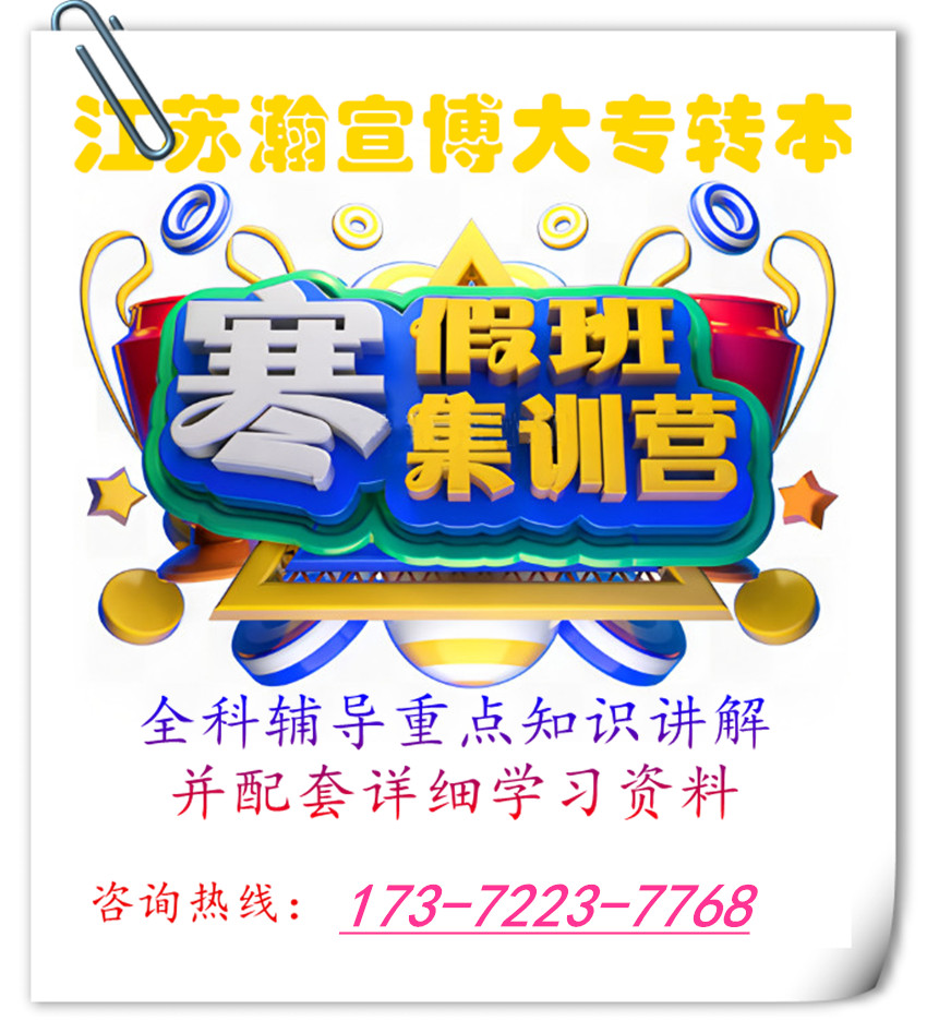 江苏瀚宣·博大专转本是一家专做五年制专转本培训的辅导机构已有十余年,汇集了众多转本经验丰富的名师,小班化教学,帮助同学们提高复习效率,找到复习方向。针对性辅导一门英语和两门专业课,授课老师帮助学员讲解知识点,快速提分,配套详细学习资料更有针对性,让学员在考试中得心应手,更有政策老师详细讲解五年制专转本考试政策问题、各主考院校详细介绍等;并根据考生不同学科、不同基础和学习能力强弱的差别进行分班授课,做到因材施教,查漏补缺,培优、补良、拔高,快速提高学生的学习能力,提高备考的效率。更多江苏五年制专转本详情请联系173微7223同7768严老师,预约试听课程并领取招生简章一份。同学和家长有空余时间可以先来实地考察上课环境、师资情况及录取率后再做考虑。