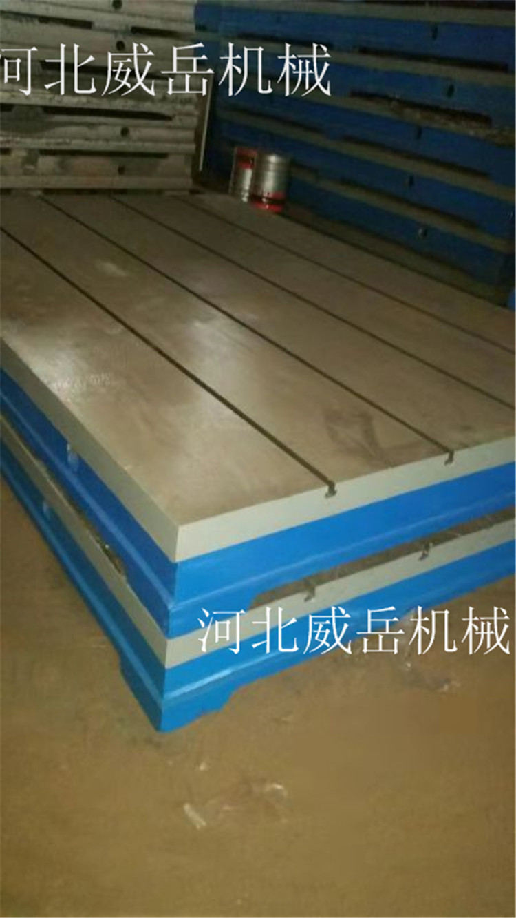 铸铁T型槽平台由于设置了加强筋,提高平台的结构强度,有利于防止其因内应力太大而开裂;并且由于本体采用了铸钢材料,增加了铸铁模抗热胀冷缩的强度,并且即使发生开裂,也易对其裂缝进行焊接修补,从而能够重复使用,大大延长了使用寿命。由此可见,铸铁T型槽平台底部设计围板和筋板就是为了增加其稳定性。铸铁T型槽平台的内部必须设计加强筋,一般的距离是间距500mm,要是平台的规格较小也可以按照实际情况来设计。底部设计围板和筋板就是为了增强平台平板稳定性。铸铁平台使用的铸铁模包括数个加强筋,加强筋分别设于与铸槽底端相对应的本体底部,并且加强筋的上端与本体底部连接固定,铸铁平台按其结构,铸铁T型槽平台分为筋板式和箱体式,合理的设计加强筋的厚度、高度、趟数对铸铁平台精度的保证起着重要作用。铸铁平台适用于各种检验工作,精度测量用的基准平面,主要用于机械工件检验测量中的基准面,检查零件的尺寸精度或行为偏差。
