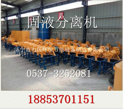 粪便干湿分离机分为液下无堵塞污泥泵和螺旋式挤压脱水机两部分,无堵塞污泥泵将粪池内粪液抽送至螺旋式挤压脱水机,通过螺旋式挤压脱水机安置在筛网中的挤压螺旋式以 46r/min 的转速将脱水的原粪榨向前推进,处理干禽粪和粪液两种物质。粪液从该机下面的粪液排出口排出,可直接输送到沼气池或者蔬菜大棚、果园等需要施肥的田地。分离处理后的半干粪可以直接装车装袋出售或者制作有机肥。粪便干湿分离机是一套环保处理禽粪的器械,能避免禽粪污染环境,能挖掘禽粪经济价值。该机适用于对猪粪、鸡粪、鸭粪、鹅粪、牛粪等进行分理处理。也用于对沼气发酵后的沼液渣进行固液分离。