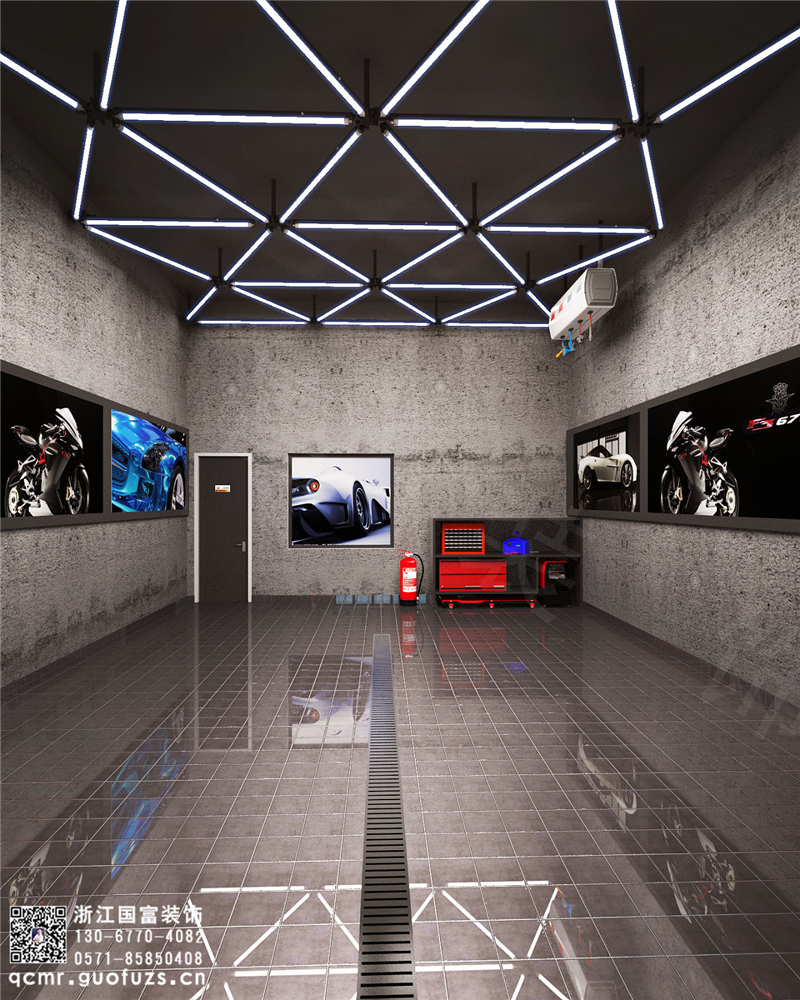 3、汽车美容店装修设计还包括天花板、墙壁、地面