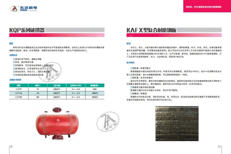 KQP-B-100L破拱器广泛应用于 火力发电厂、煤矿及井下煤仓、洗煤厂、水泥厂、混凝土加工厂、铸造厂、化肥厂、焦化厂、煤气厂、化工厂、铝厂、碱厂、钢铁厂、矿山、码头、食品、粮食、饲料加工厂、锅炉、制药厂等重要贮运散装物料的场合。