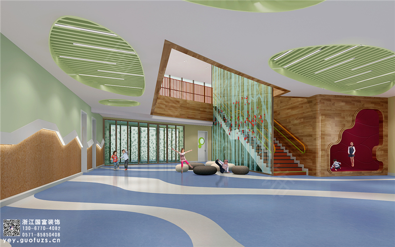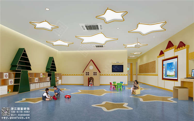 幼儿园高端设计公司华德装饰设计认为,孩子都是比较活泼好动的,在他们玩耍起来之后就会忘乎所以根本停不下来,所以在他们玩耍的过程中是经常会受伤,我们在选择幼儿园的地板时就应该注意了,建议选择木质地板或者塑胶地板,降低孩子们受伤的风险,的公司都会做这样的选择。