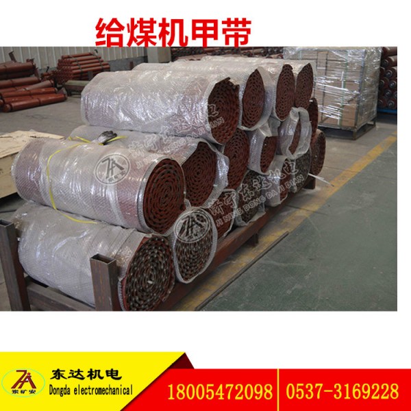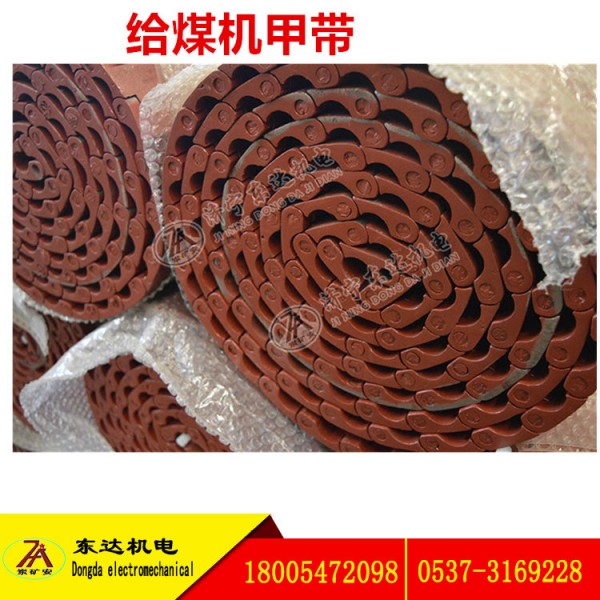 二、煤矿用甲带式给煤机甲带给煤机甲带甲带式给煤机配件环形胶带加筋胶带二维桑性甲带锰钢履带16锰钢甲片规格:40*45