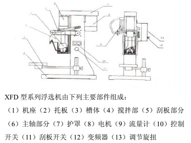 XFD-3单槽浮选机 3L黑色金属浮选机(矿用单槽浮选机)由电动机三角带传动,带动叶轮旋转,产生离心作用形成负压,一方面吸入充足的空气与矿浆混合,一方面搅拌矿浆与药物混合,同时细化泡沫,使矿物粘合泡沫之上,浮到矿浆面再形成矿化泡沫。XFD-3单槽浮选机 3L黑色金属浮选机调节闸板高度,控制液面,使有用泡沫被刮板刮出。