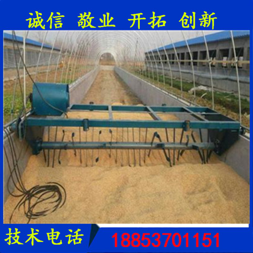 3、启动翻抛机:点开控制箱启动按钮,翻抛机会沿槽上的导轨自动行走,到达另一头自动停止,操作简单,可手动及遥控控制。
