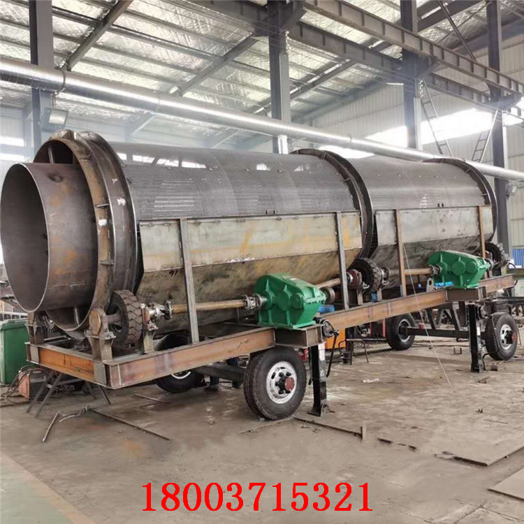 滚筒筛主要有电机、减速机、滚筒装置、机架、密封盖、进出料口组成。滚筒装置倾斜安装于机架上。电动机经减速机与滚筒装置通过联轴器连接在一起,驱动滚筒装置绕其轴线转动。当物料进入滚筒装置后,由于滚筒装置的倾斜与转动,使筛面上的物料翻转与滚动,使合格物料(筛下产品)经滚筒后端底部的出料口排出,不合格的物料(筛上产品)经滚筒尾部的排料口排出。由于物料在滚筒内的翻转、滚动,使卡在筛孔中的物料可被弹出,防止筛孔堵塞。滚筒筛砂机、滚筒筛分机与滚筒筛的原理构造几乎相同,是人们对它的认识和叫法上存在差异。