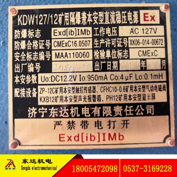 KDW127/12矿用隔爆兼本安型直流稳压电源稳压、限压、过压保护电源。Kdw127直流稳压电源我们标准的是不带后被电池的,我们也可生产带后备电源的直流稳压电源,后备电池可待机2-4个小时,待载功率20-30W 均可,产品咨询电话18005472098