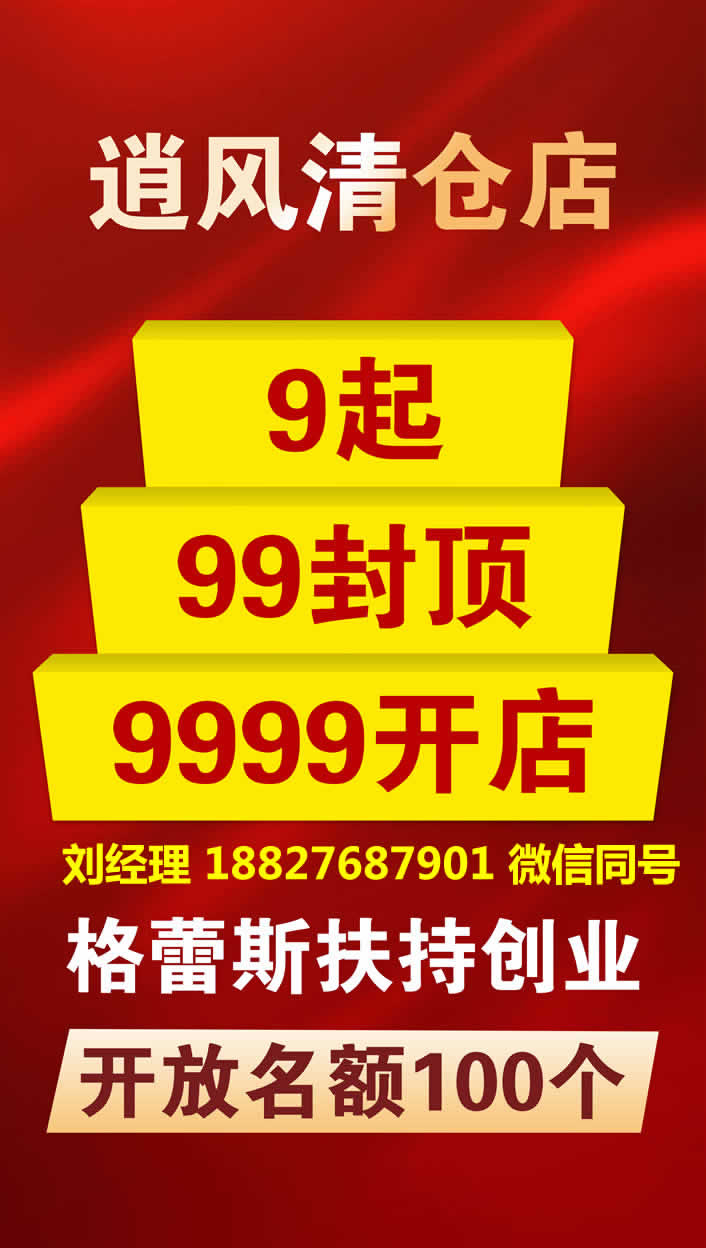 逍风清仓店有男装、女装、童装.服装定价在9—99元之间,为各地加盟商、零售商提供优质价廉的品牌服装货源。加盟热线:18827687901.公司经过多年的经营积累,已与众多品牌服装厂家保持着良好的合作关系.