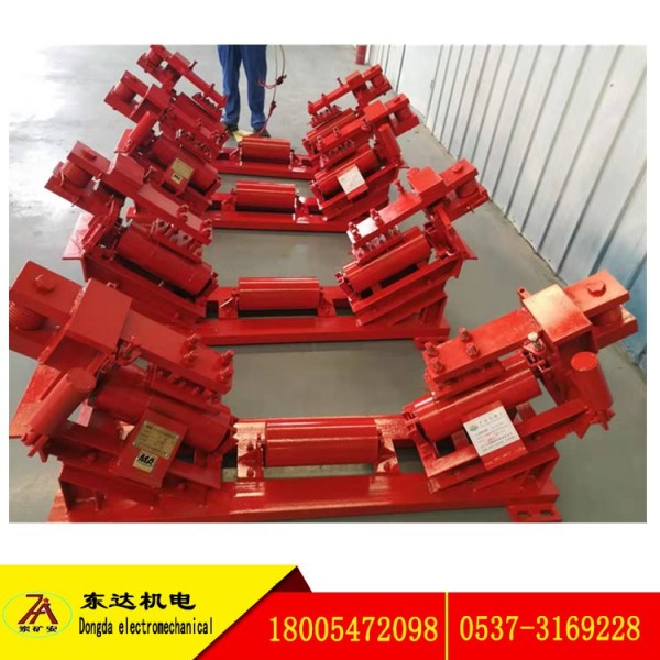 3.制动机构开角大于160度并且可以伸缩调节,保证制动机构与皮带、煤流的距离大于150㎜,防止因胶带、煤流的碰撞造成误动作,适应大跑偏量胶带输送机。
