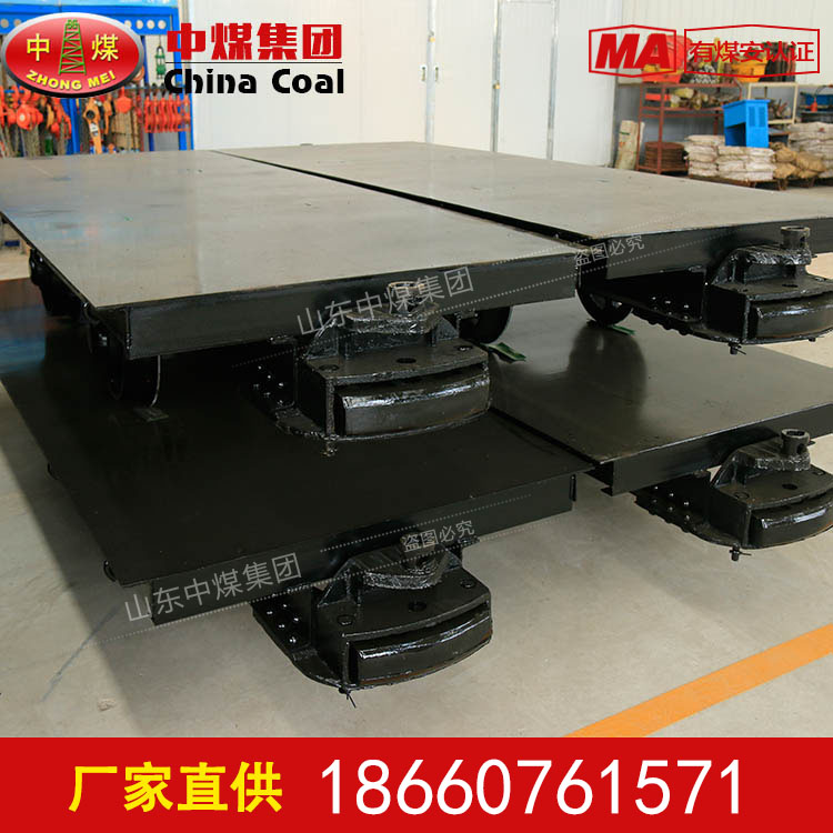 矿用平板车自身无动力,需要由牵引车或者叉车来进行拖带。通常由一辆或多辆平板车和一台叉车或牵引车组成一列车辆来进行货物平面运输或大型设备的搬运工作。