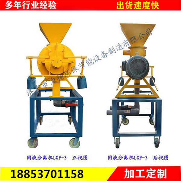 固液分离机:该系列机去污能力强,无堵塞,清洗方便。经过处理的粪尿水含固率、化学耗氧量、总耗氧量、氮、磷的去除率可在70-95%之间,分离速度快,经分离后的粪渣含水量在40-65%之间,出渣量及含水量可调整,可适用不同成份的饲料(如草及精饲料),便于运输,其固粒物很适合作为有机肥的原料等。该系列机的筛网、蛟龙等由镍合金钢和高强度碳钢等制成,耐腐蚀、强度高,使用寿命长,自动化程度高,耗电量小,价格低。操作方便只需按启动停按止钮进行操作。济宁市力扬环保节能设备制造有限公司边经理电话——18853701158(VX同步)QQ:1773375141