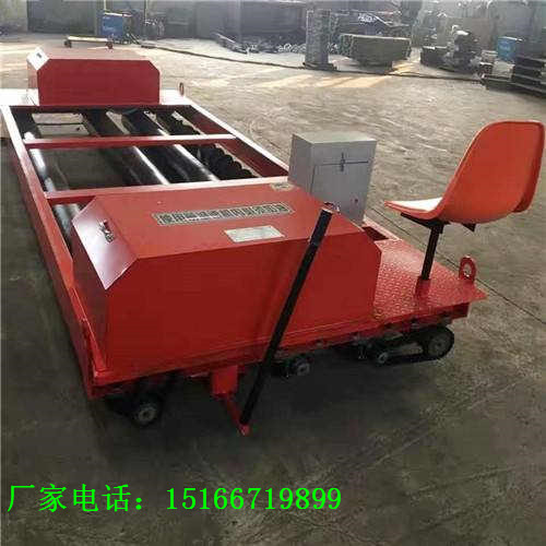 该摊铺机为一人操作,由控制手柄直接控制,独立控制,操作简便转向灵活,调整时,只须关掉振动电机,用三角铁挡住一端,启动行走电机,往复操作,迅速调整跑偏。