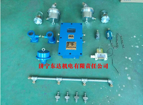 粉尘超限洒水装置在大巷喷雾降尘的基础上进行改造,它是由控制箱、粉尘浓度传感器、光控传感器、电磁阀等部分组成。超限喷雾装置主要用途及使用范围:该装置主要用于煤矿井下进风大巷、回风大巷、采掘工作面进、回风巷道及其它需要对粉尘浓度设限喷雾降尘的场所,实现在线监测粉尘浓度、净化风流;优点:装置具有设限喷雾功能,可实现按需要喷雾降尘,节约水电,同时用一台粉尘浓度传感器,按粉尘浓度设定值控制1-4个电磁阀,同时开启或同时关停1-4道水幕,在水幕两侧可安设2-4个光控传感器,当光控传感器探测到人体信号,就使全部水幕延时喷雾一段时间,延时时间到后在喷雾,装置中控制箱具有参数存储功能,断电后恢复供电,系统仍按原存储的参数进行工作;装置设限浓度值范围宽,可在(10-490)mg/m3。