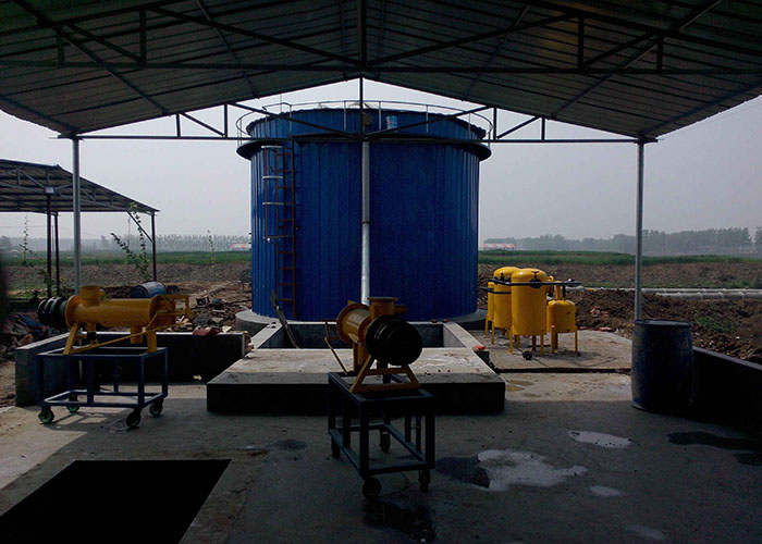 2:厌氧发酵罐消化器或称沼气发酵的核心设备,微生物的繁殖,有机物的分解转化,沼气的生成都是在消化器里进行的,因此消化器的结构和运行情况是一个沼气工程设计的重点。
