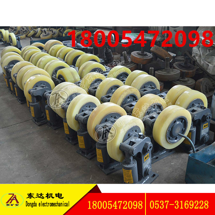 滚轮罐耳为一种立井提升容器用滚轮罐耳,其结构由底座、摆转臂、滚轮、缓冲器组成;适用领域是立井提升容器,类型是垂直提升机,厂家技术咨询电话18005472098