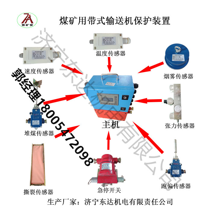 (5)温度保护:皮带机综保当监测点温度超过传感器的设定温度时(+80),本装置立刻实现温度故障保护。