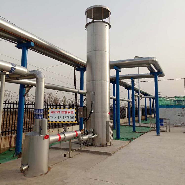 塔体:主体外壳用304不锈钢制作,中间为保温材料层,内胆为高温浇注料,具有耐高温、抗腐蚀、防氧化等特点,外表温度不超过60℃,充分保障了火炬的使用寿命。