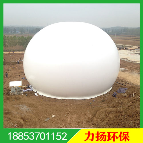 力扬双膜储气柜原理及操作日常维护在沼气环境下可达15年以上,而其材料的拼接采用热熔式等材料等强度焊 接,所以在使用双膜气柜时,其膜体是无需定期维护,由于双膜气柜膜体是用耐腐蚀的特质材料制成,其中设有压平安阀及沼气走漏报 警器。全部气柜在工厂内制作及测试结束,保障质量没有导轨,没有升降活塞,没有压重,没有培修!气柜没有水封+油封+弹簧,不怕结冰,不须加温,不须调剂!不会发生负压而引起塌顶、倒塌,完整可实现无人操作不发生净化,没有如湿式气柜一样发生少量含酚废水,形成二次净化。