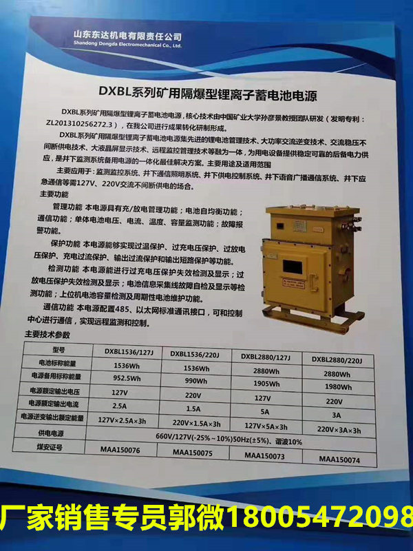 井下通信系统应急电源DXBL1536/127待机时间长,集先进的锂电池管理技术、大功率交流逆变技术、交流稳压不间断供电技术,大液晶屏显示技术、远程监控管理技术等于一体,是井下监测系统备用电源的一体化zui佳解决方案。
