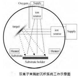 该制造商采用双离子辅助镀制 Al2O3 薄膜, 其中一个离子源(KRI 考夫曼射频离子源 FRICP380)主要是用于产生高能氩离子束轰击靶材, 通过动量传递使靶材原子获得足够的动能而脱离靶材表面, 射向基板, 在基板的上沉积而形成一层薄膜;