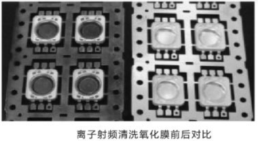 在真空状态下, 利用射频源将氩气电离成高能量的离子去撞击LED上的有机污染物及微颗粒污染物, 从而使得污染物被轰击除掉.