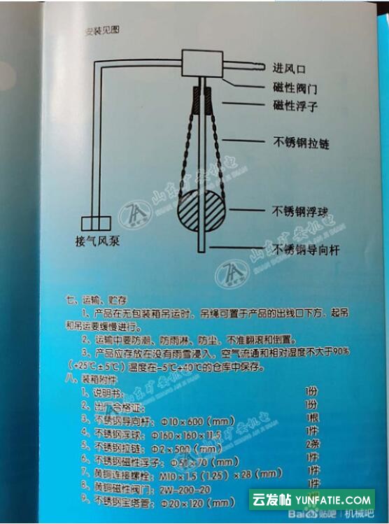 FYK20风泵控制器(气风泵自动排水器)风泵自动排水控制器采用风泵自动排除积水,保证了回风巷回风的断面积;V型架的设计实现了球形阀门的控制,使球形阀门可以在一个合理的水位范围内实现自动开启与关闭。