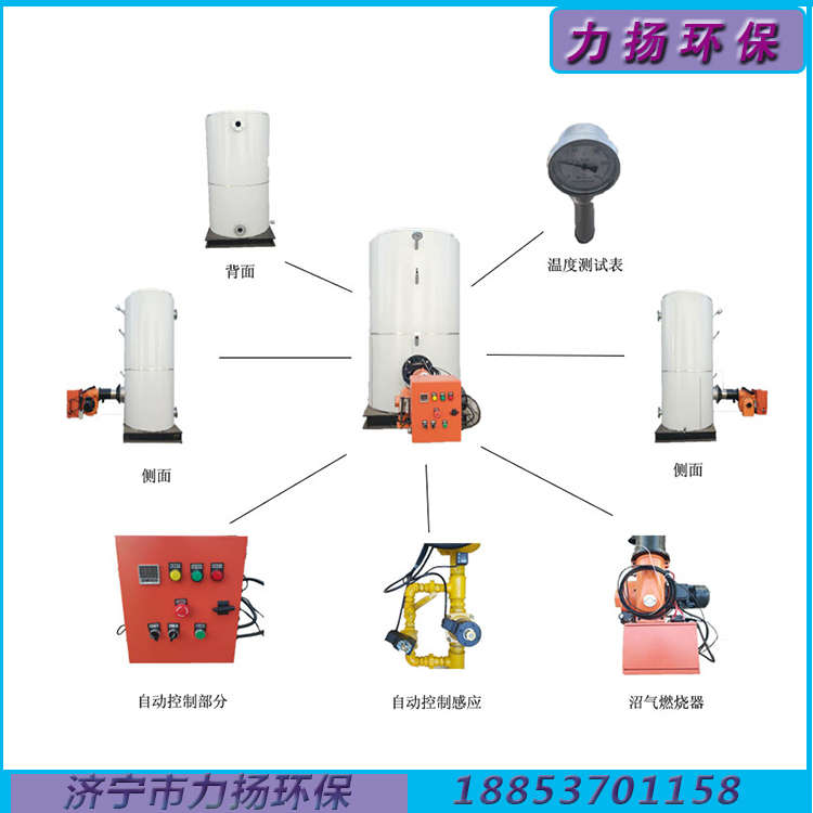 沼气锅炉适用大型采暖,环保无烟,同时沼气燃烧装置采二段式燃烧器,内置换热器,保证燃烧稳定。是利用燃料产生的热能,加热锅壳内的水,使其达到一定温度后,作为采暖热水供系统使用。