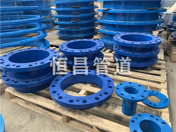 双法兰松套传力接头 擦净管材端部及承口内表面,放入胶圈并检查胶圈位置的正确性。在管材端部或伸缩接头承口的胶圈表面涂抹润滑剂。润滑剂应对橡胶不产生腐蚀,一般可采用经稀释的家用洗洁精。