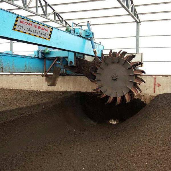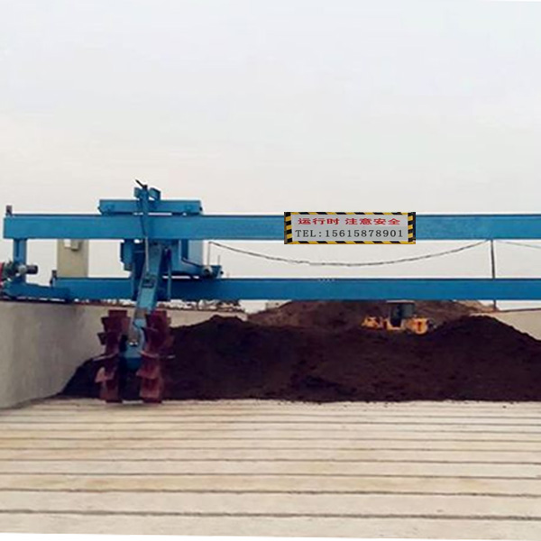 大型有机肥翻抛机一般在密闭式发酵车间内进行,通过将有机废弃物原料堆置在发酵槽前端,利用大型翻抛机移动物料,并在发酵槽底部布置曝气系统,使物料实现快速腐熟。大型翻抛机槽式堆肥具有处理量大、发酵周期短、自动化程度高、臭气可收集处理、土建投-资成本较高等特点,适用于大型规模养殖场废弃物集中处理。