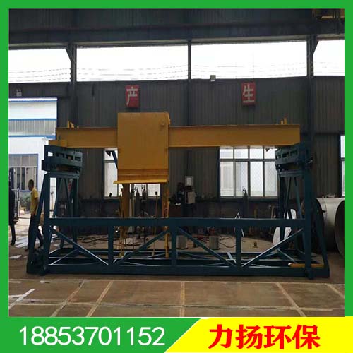 行车式翻抛机由传动装置、提升装置、行走装置、翻堆装置等主要部件组成。行车式翻抛机电动机直接将动力传给摆线针轮减速器经链轮至翻堆滚筒,滚筒上的搅拌桨叶呈螺旋分布,可将发酵槽内的物料翻转搅拌移动至0.7-1m远的位置,起到翻堆速度快、搅拌均匀的效果,从而达到物料与空气的充分接触,使物料的发酵效果更好。