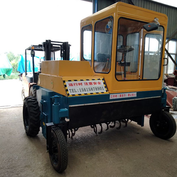自走式翻抛机采用四轮自行走式,由一人操控应用防滑轮胎,行走时整车骑跨在条形堆上,车过后形成新的条形堆,前后安装挡板,可防止翻堆中物料飞散。该机可多种场合作业,在物料发酵后期还具有破碎功能,整体结构刚性好,性能可靠。