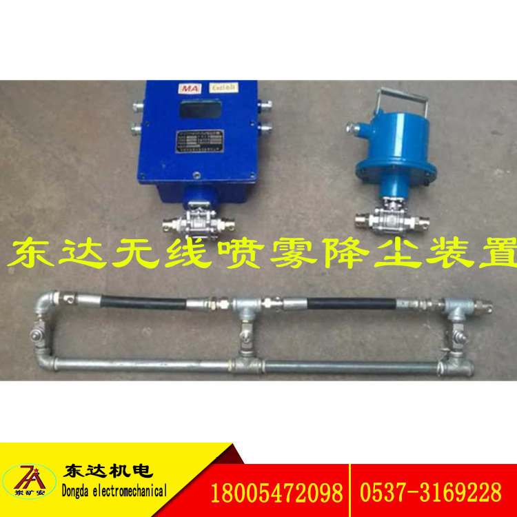 全自动无线喷雾降尘装置:适用于煤矿大巷或转载点自动喷雾除尘(或风水联动喷雾降尘),或没有电源的喷雾降尘,特别合适于爆破作业过程中巷道全部停电状态下的自动喷雾降尘。