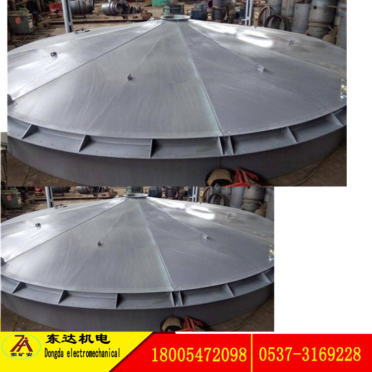 1、防爆盖采用锥形结构,分四个部分联接而成,每部分由钢板,角钢组焊成型。