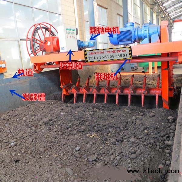 堆肥发酵翻耙机采用现代生物工程技术研制生产的用于有机肥生产的高科技产品。节省了大量的人力物力工程,使制肥规模的伸缩性更加随意,尤其适合将农业废弃物、储蓄粪便和有机生活垃圾转化为优质生物有机肥。整槽翻堆,发酵槽内物料在一个横截面上被上下翻动,物料翻堆均匀,池中如有结块可被旋耕齿打散,翻堆均匀。翻堆深度0.6m~0.8m,深度受限制;宽度2m~6m。该设备发酵槽为钢筋混凝土结构,相邻两个发酵槽共用池壁。池壁的宽度根据该设备的要求确定。池壁要能承受该设备的压力,发酵槽底板既要承受发酵物料的重力,又要承受装载机的重力,同时还要满足通风的要求。