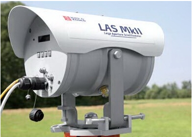 应用说明:LASMkⅡ大口径闪烁仪设备本身可测量大气折射率和Cn2,通过加装气象传感器套件、净辐射传感器、土壤热通量传感器等,即可组成LAS MkⅡ ET(Evapo-Transpiration)系统,同时测量风速、温度和大气压力,从而计算出感热通量和蒸腾,能用于水文监测、卫星监测数据地面验证、湍流特点、边界层能量平衡研究。