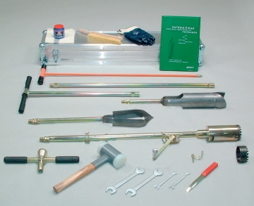 用途:05.02双向根钻套件可采集最大15厘米的原状土,样品几乎可以保持与原样一致。根钻的底部有可更换的钻齿冠、顶部较短,不能拆卸,套装配有尼龙锤。如果土壤比较松软,可以把螺丝钻直接插入,如果土壤比较厚重,则需要使用尼龙锤。标准套件中包括了Edelman钻和Riverside钻,它们不但可以钻孔,还可以把钻孔底部弄平以方便取样。根钻上装有样品推取结构,可以将样品从螺丝钻的圆筒中推出来。挤压器是用曲柄操作的。完整的根钻设备包括所有的附件,装在铝制的运输箱里。