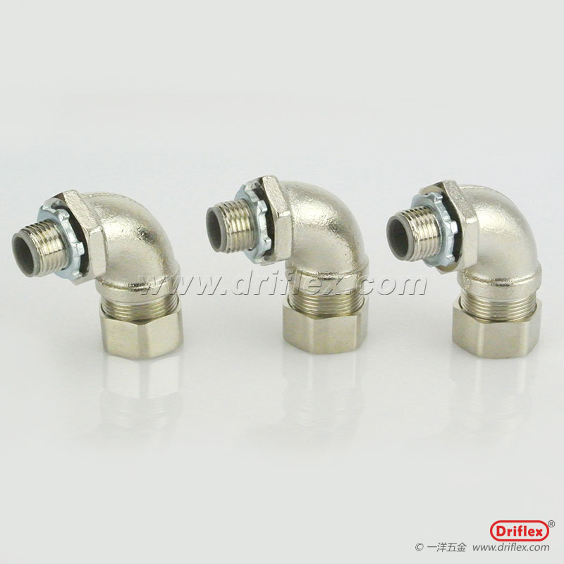 机电设备穿线用铜镀镍90度外螺纹软管接头内径12到51mm