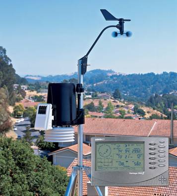 用途:Davis Vantage Pro2无线自动气象站是一款集成化的自动气象站,可以测量风速、风向、空气温度、空气相对湿度、降雨量、气压、太阳辐射、紫外辐射量和计算多种气象参数(视具体购买配置),数据按照设定的采样间隔自动采集保存。基本配置由无线气象站主机和无线控制台、软件和数据存储卡组成,无线气象站主机用来测量气象参数并将数据通过无线电的方式传输给无线控制台,无线控制台在液晶显示屏上实时显示测量和计算的气象参数,数据存储卡用于存储测量和计算的气象参数,通过软件进行下载分析。