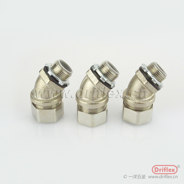 铜镀镍45度接头端接式金属软管连接器配铁镀锌梅花锁母