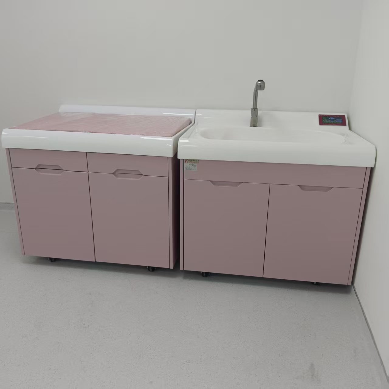 迪新婴儿洗浴中心拥有良好的台面质感,细腻亲切,无冰冷感,全弧形造型设计给婴儿体贴的呵护与关怀,洗礼池和游泳池特有的裙边设计,既方便固定一次性防交叉感染隔膜袋,又防止台面上污水流入池内。游泳池利用有效的水平面积提供更加理想的池内净深度,满足婴幼儿洗浴时的安全高度需要,同时有效保持水温特别设置水位线,防止婴儿游泳时池水外溢。