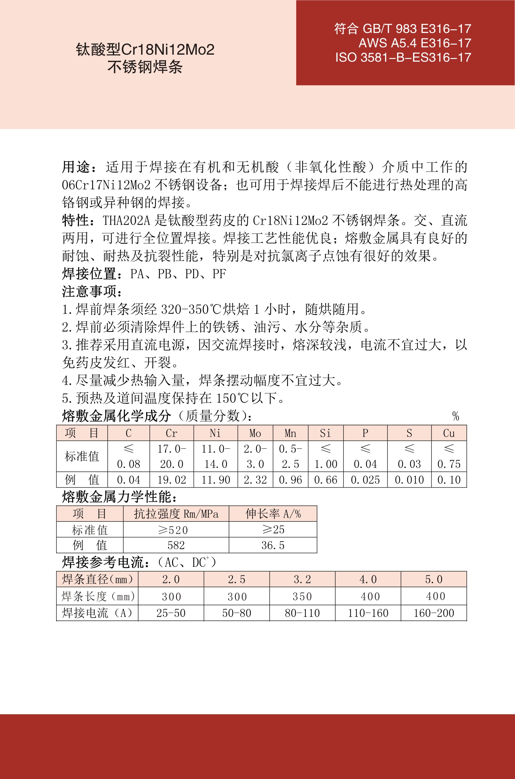 THA202A不锈钢焊条E316-17焊条
