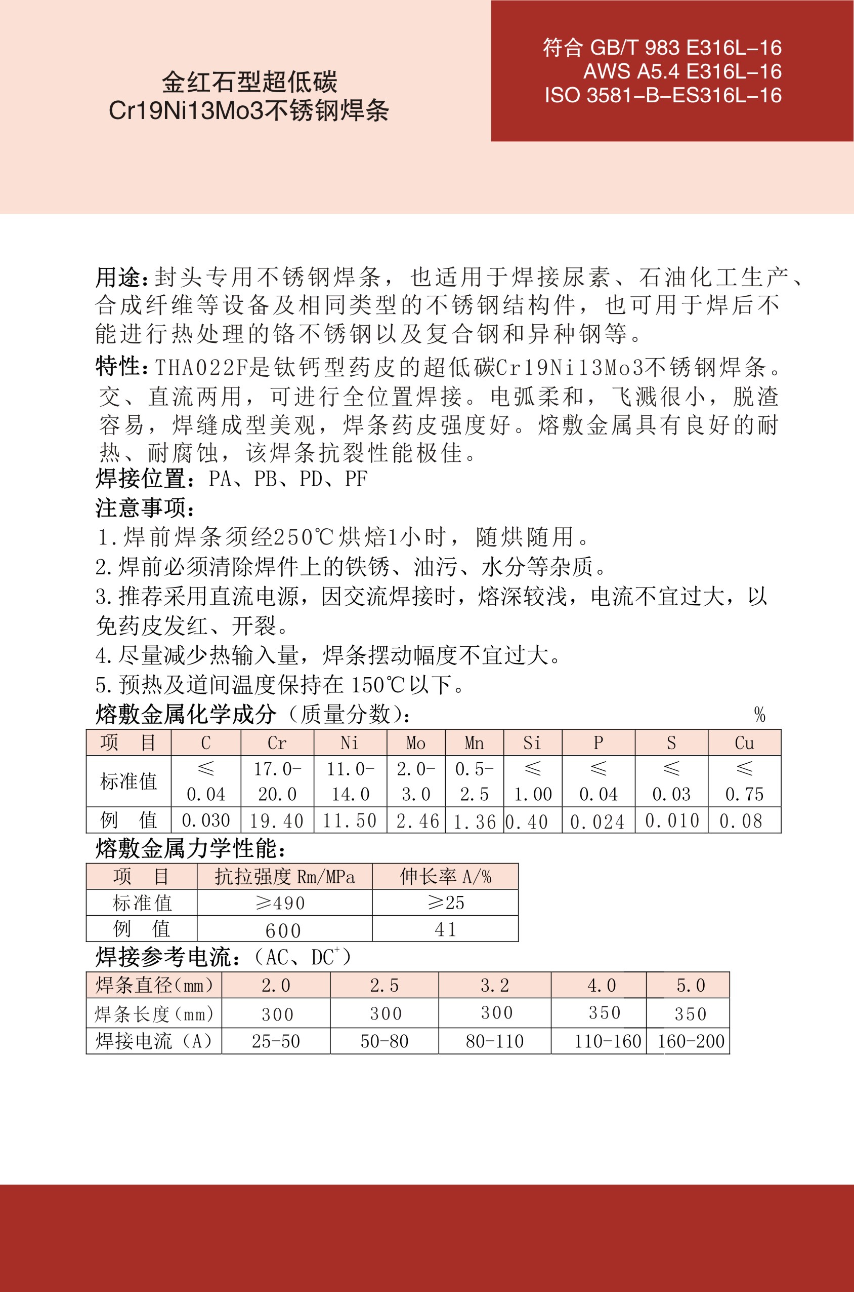 THA022F不锈钢焊条E316L-16焊条